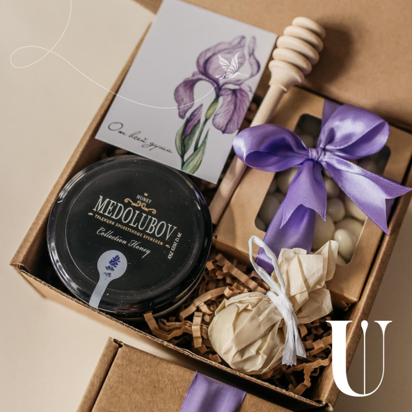 Милый подарочный набор с лавандовым медом будет прекрасным подарком по любому поводу.