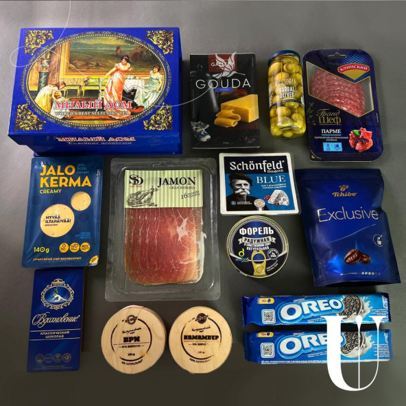 В данной продуктовой корзине используются продукты иностранного производства (Италия, Франция, Испания и пр). В связи с санкциями возможна замена некоторых компонентов на аналогичные смежных марок. Со своей стороны мы обязуется использовать полные аналоги и соблюдать цветовую гамму корзины.