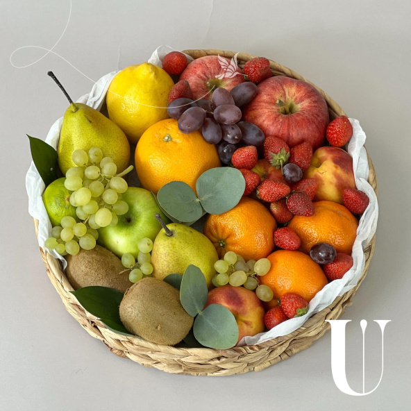 Фрукты представленные в композиции используются сезонные и могут отличаться по размеру и цвету, однако все ингредиенты будут обязательно свежими, а композиция максимально соответствовать представленной на фото.