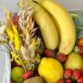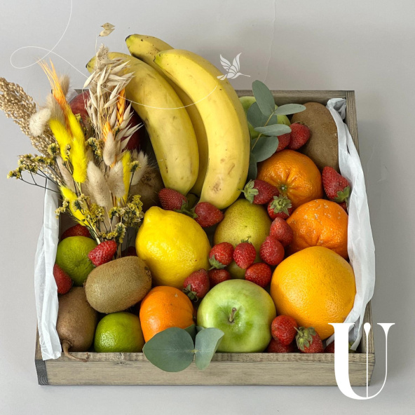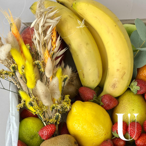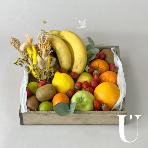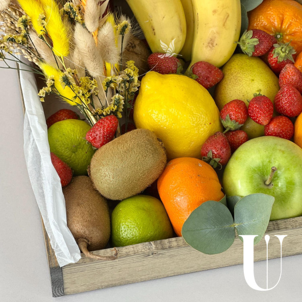 Фрукты представленные в композиции используются сезонные и могут отличаться по размеру и цвету, однако все ингредиенты будут обязательно свежими, а композиция максимально соответствовать представленной на фото.