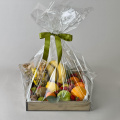 Композиция будет презентабельно упакована в прозрачную пленку с лентами.