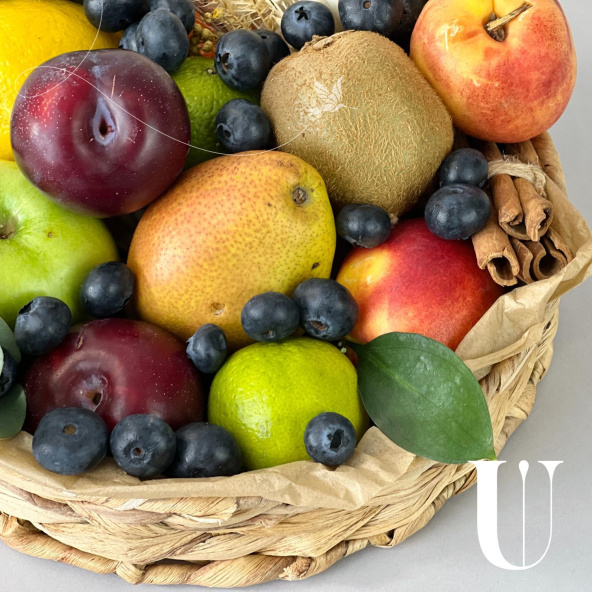 Фрукты представленные в композиции используются сезонные и могут отличаться по размеру и цвету, однако все ингредиенты будут обязательно свежими, а композиция максимально соответствовать представленной на фото.