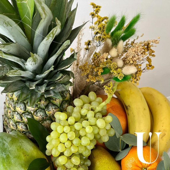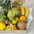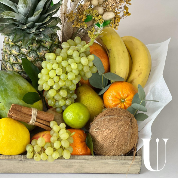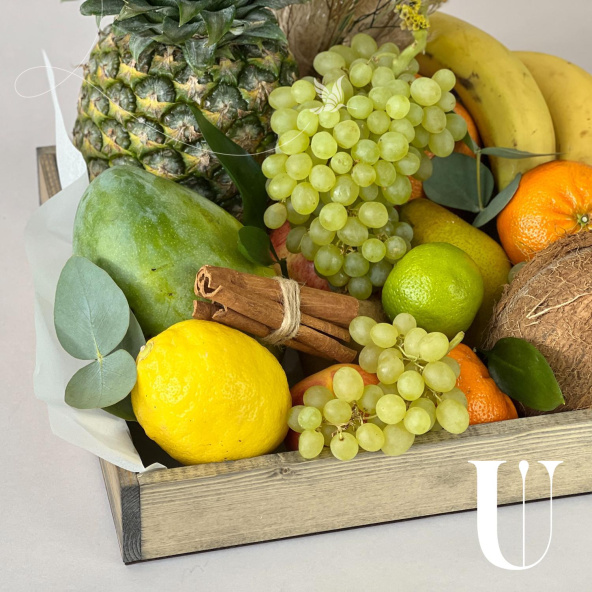 Фрукты представленные в композиции используются сезонные и могут отличаться по размеру и цвету, однако все ингредиенты будут обязательно свежими, а композиция максимально соответствовать представленной на фото.