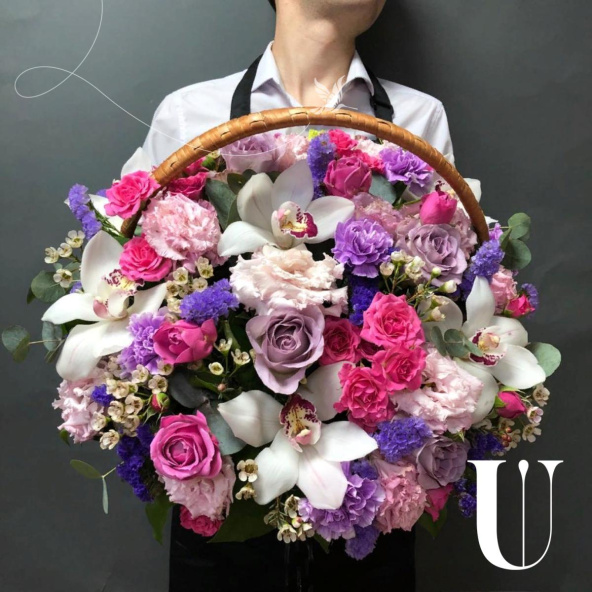 - Корзина круглая (выс. 15 см, выс. с ручкой 50 см, шир. 30 см) - 1 шт