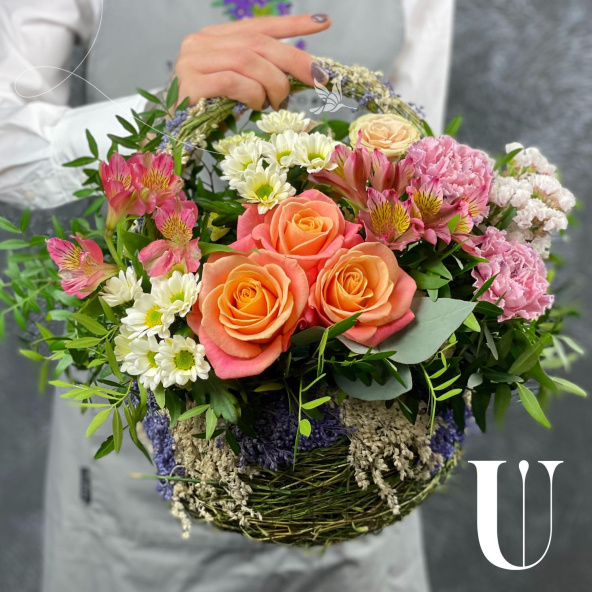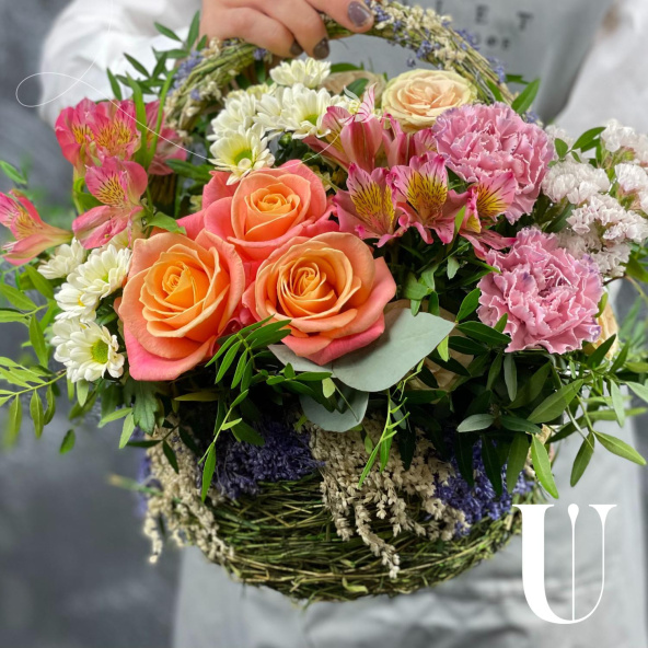 - Корзина плетеная, сиреневая (выс. 12см, выс с ручкой 31см, дл. 20см, шир. 18см) - 1 шт
