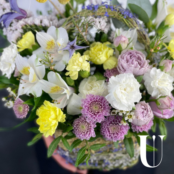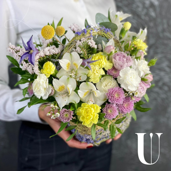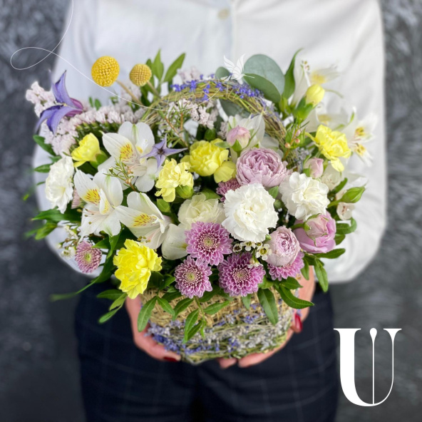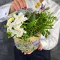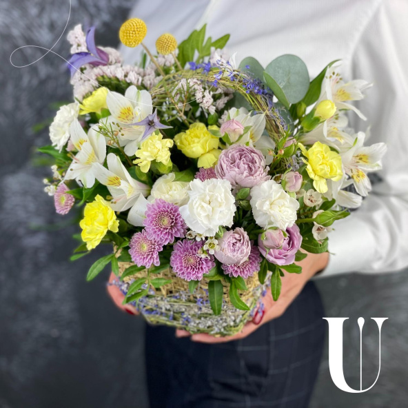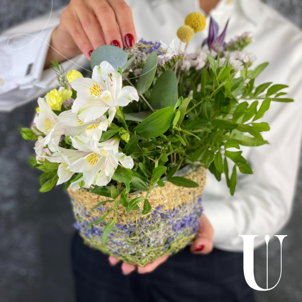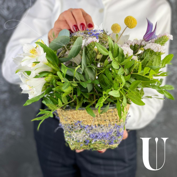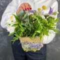 - Корзина луговая с одной ручкой, плетеная, микс (выс.9см, выс с ручкой 23см, дл. 9см, шир. 13см) - 1 шт