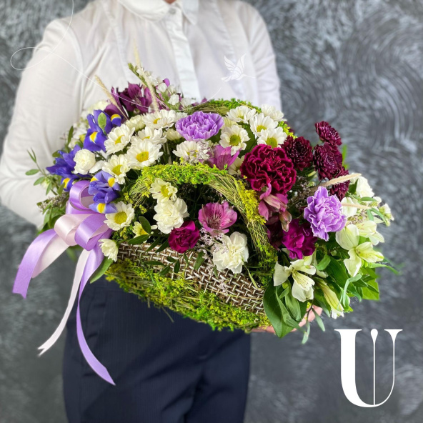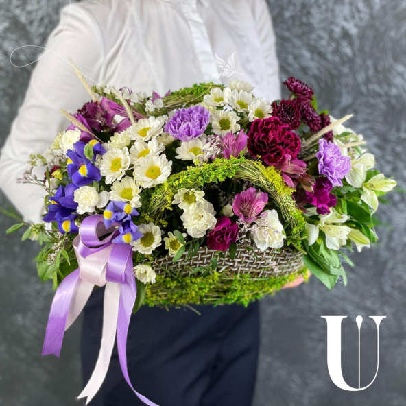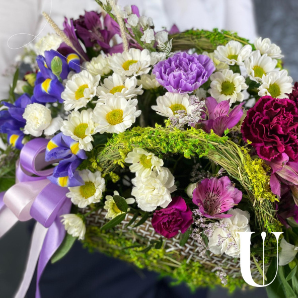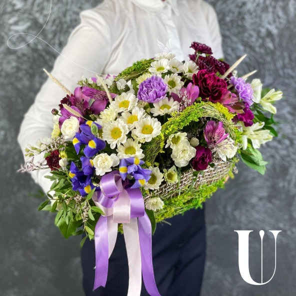 - Корзина луговая с двумя ручками, плетеная, микс (выс. 15см, выс с ручкой 25см, дл. 29см, шир. 19см) - 1 шт