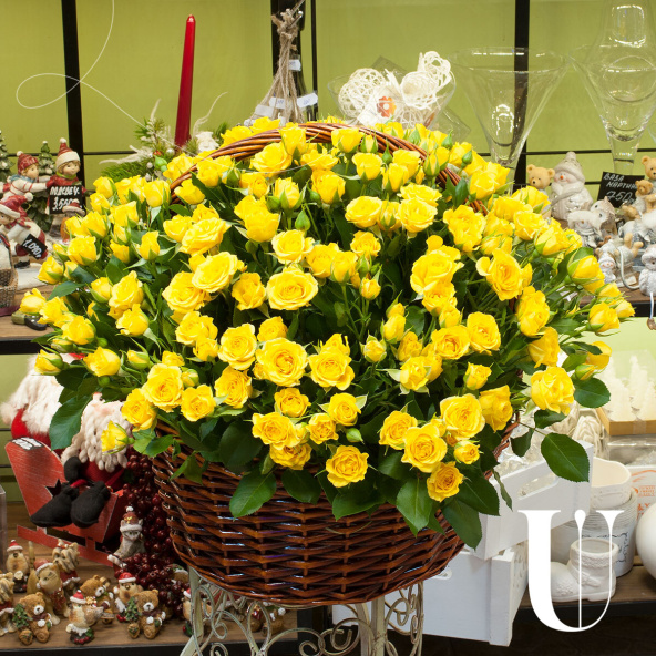 Композиция из 55 роз сорта Джумилия 60 см в корзине