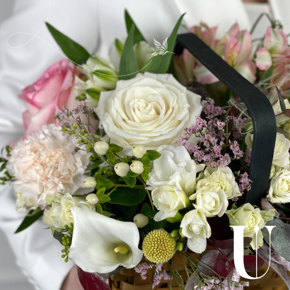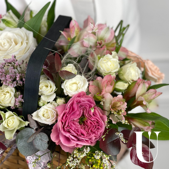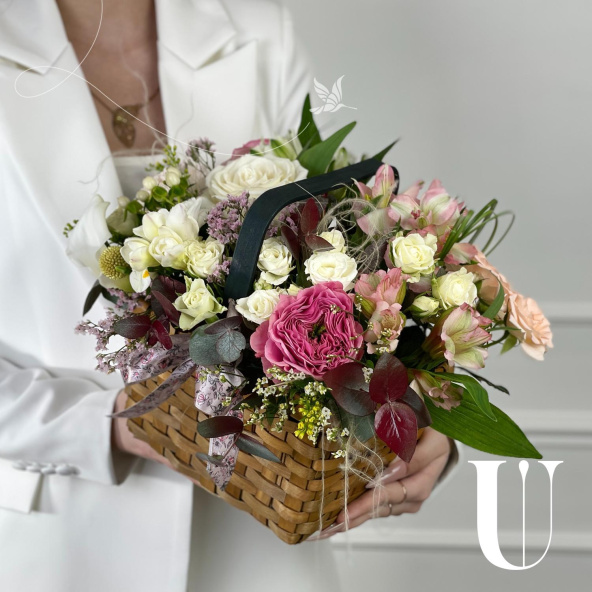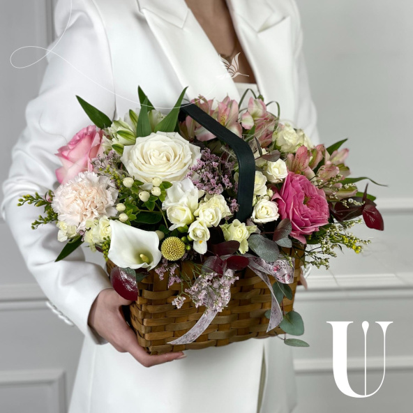 - Корзина плетёная с ручкой (выс. 13 см, выс. с ручкой 25 см, шир. 20 см) - 1 шт