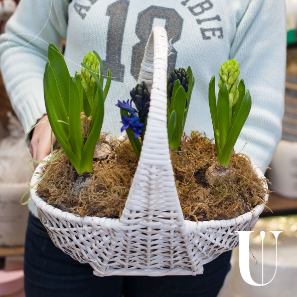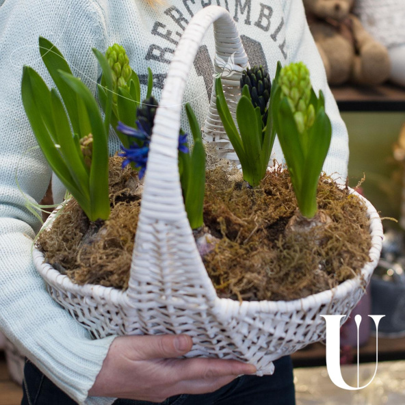 Гиацинты в луковицах 5 шт, земля, мох, корзинка