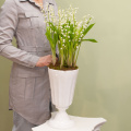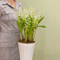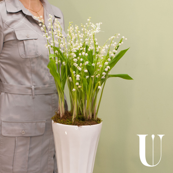 Нежная композиция из роз Пинк Молндиаль, белых эустом и белых орхидей в корзине