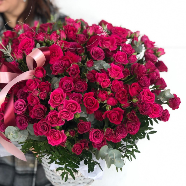 Что может быть прекраснее выражения искренних чувств? Красивая композиция из кустовой розы в корзине, станет приятным дополнением