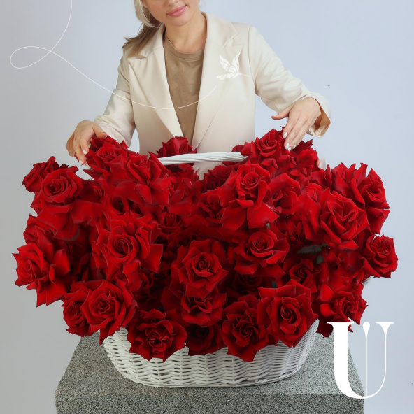 Огромная композиция из 251 розы сорта Ред Наоми в корзине