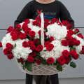 Выбирая корзину из ярких красных роз и белой гортензии "Viva la Vita", вы делаете прекрасный и значимый подарок, который будет радовать получателя своей красотой и свежестью.