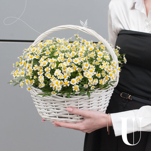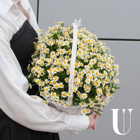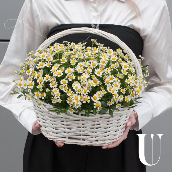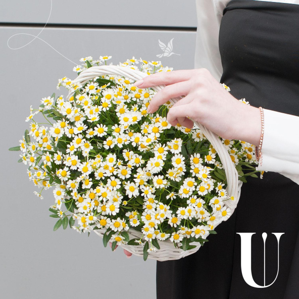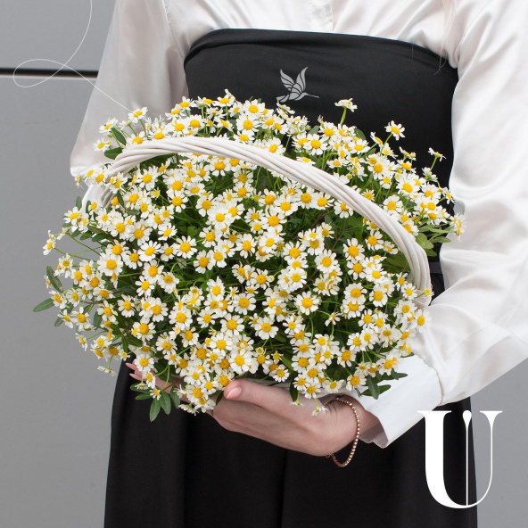 Корзинка из кустовой ромашки "Ромашковый цвет" - это уникальное и стильное решение для подарка.