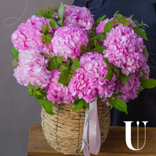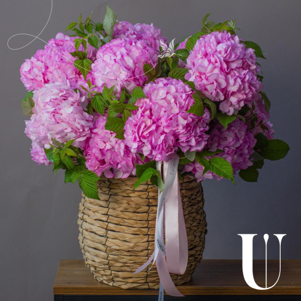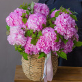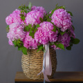 Орхидеи, гвоздики, лизиантусы и хризантемы в корзине