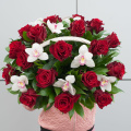 Выбирая корзину из красных роз и белых орхидей с зеленью "Яркое поздравление", вы делаете отличный выбор для подарка, который будет радовать и напоминать о вас долгое время.