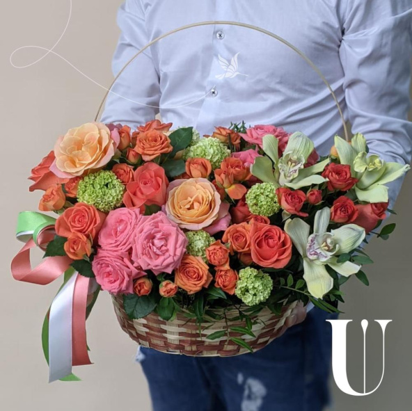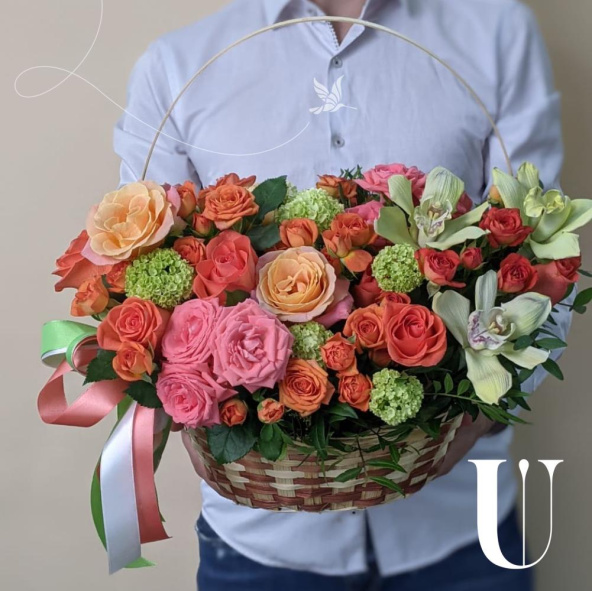 - Корзина круглая (выс. 15 см, выс. с ручкой 50 см, шир. 30 см) - 1 шт