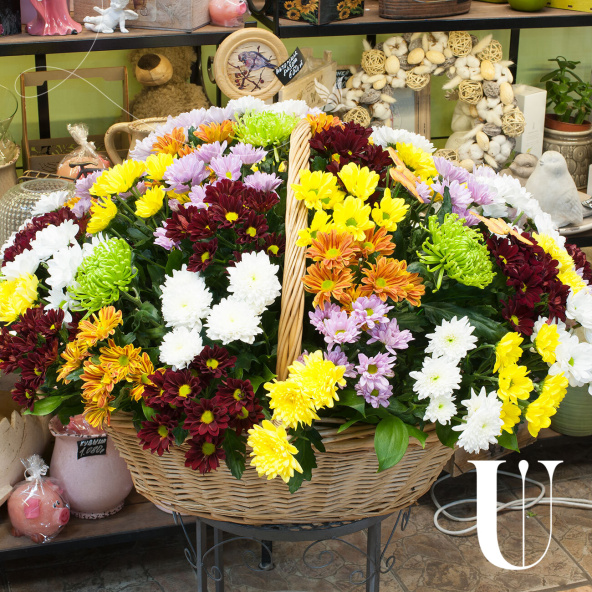 Роскошная композиция из лилии, орхидей, роз и других цветов в корзине