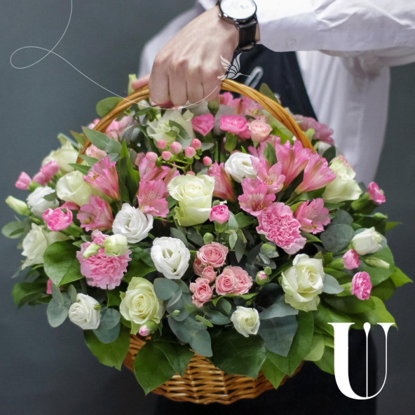 - Корзина круглая (выс. 15 см, выс. с ручкой 50 см, шир. 30 см) - 1 шт