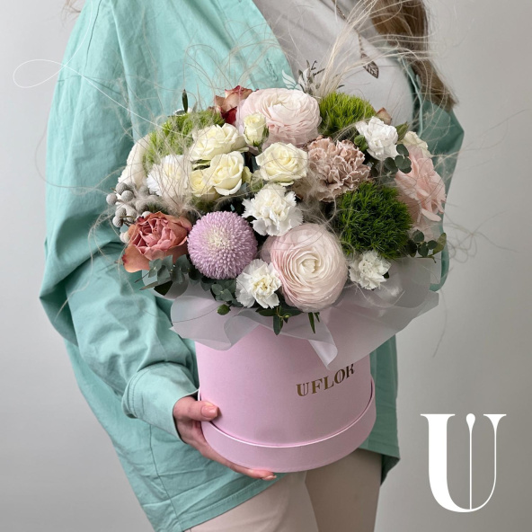 - Шляпная коробка маджестик (U), светло-розовая (выс. 18 см, диам. 16 см) - 1 шт