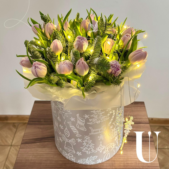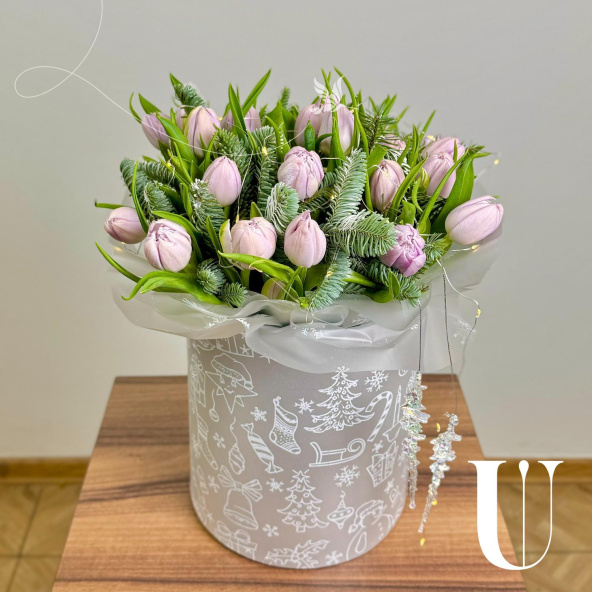 Шляпная коробка разработана нашими дизайнерами в новогоднем стиле.