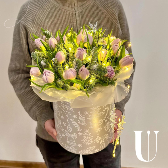 Нежная, уютная композиция с огоньками, порадует вам своей красотой.