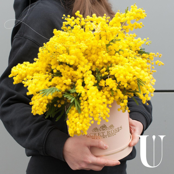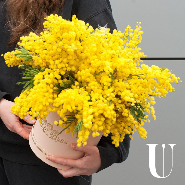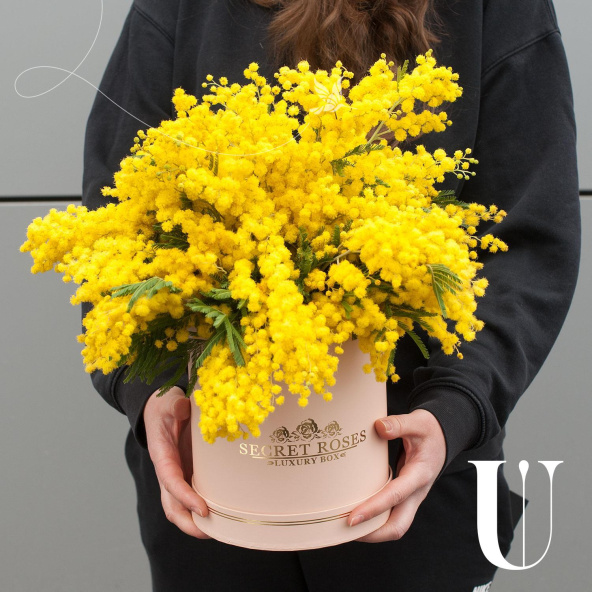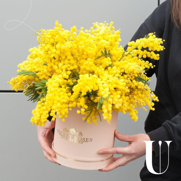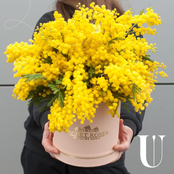 Гиацинты с мимозой в коробке