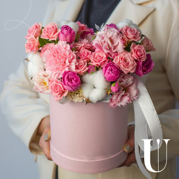 - Шляпная коробка розовая (выс. 16 см, диам. 16 см) - 1 шт