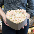 Цветочная композиция из кремовых диантусов и белых эустом в коробке