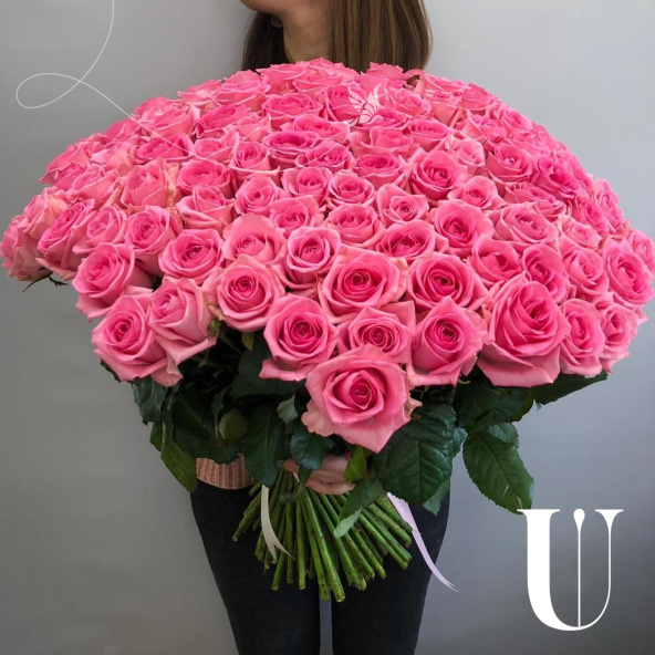 Огромный букет из 101 коралловой розы в дизайнерской упаковке