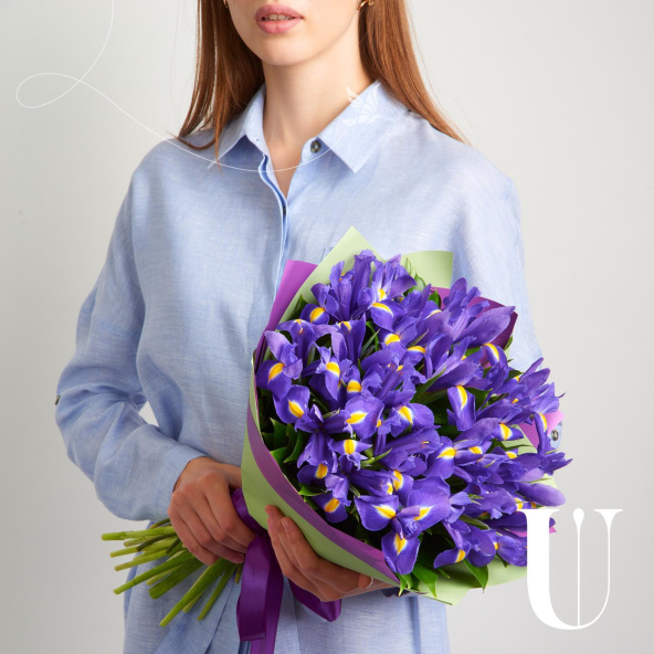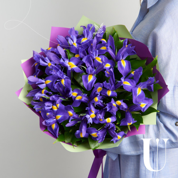 Монобукет из 15 альстромерий с зеленью в крафтовой упаковке