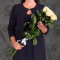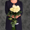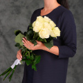 Кремовый монобукет из 19 роз сорта Талея в дизайнерской упаковке