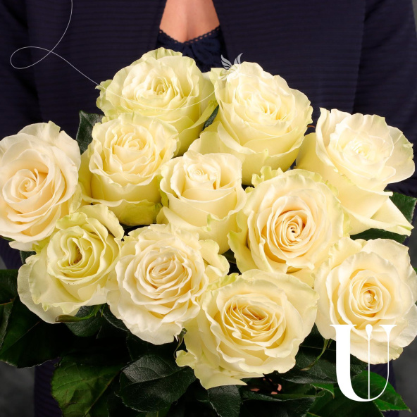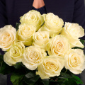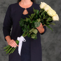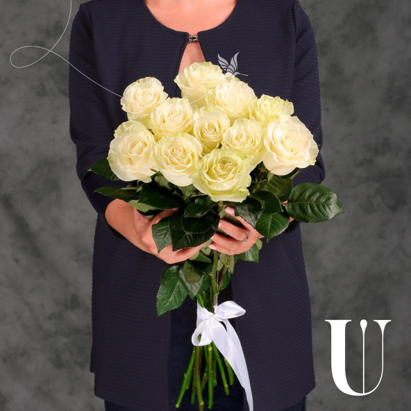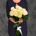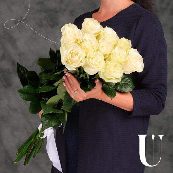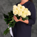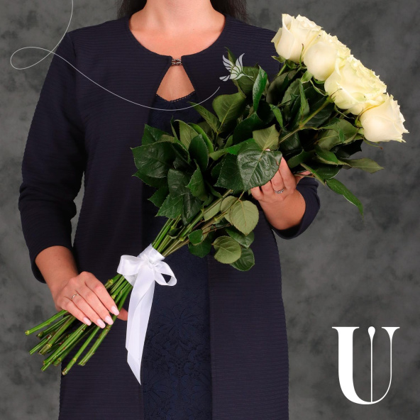 Монобукет из 7 роз сорта Вайт Охара в стильной упаковке