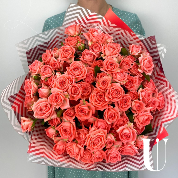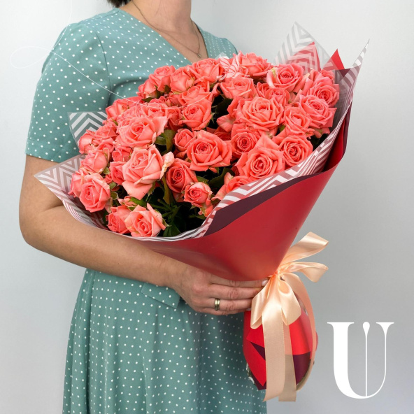 - Роза кустовая, Барбадос, Россия, коралловая, 50 см. - 19 шт