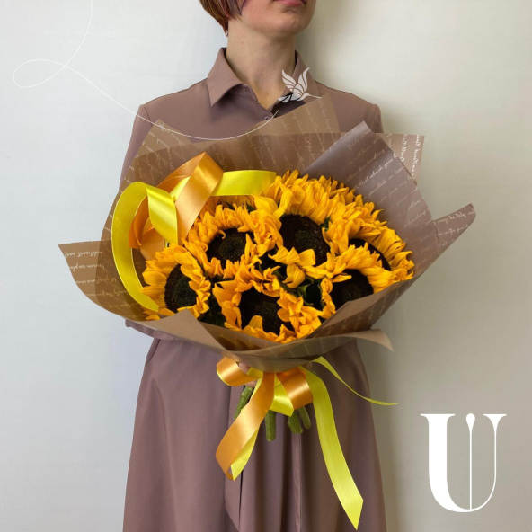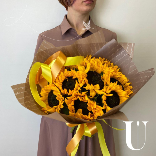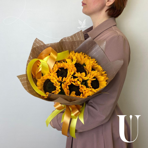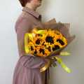 Монобукет из 9 роз сорта Кэндллайт в упаковке