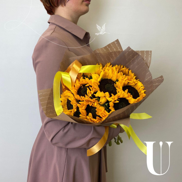 Монобукет из 5 розовых лилий в дизайнерской упаковке