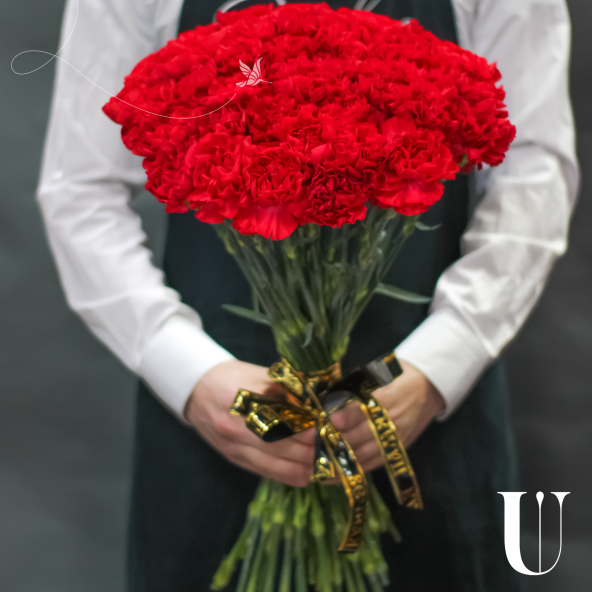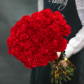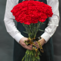 Монобукет из роз сорта Ред Наоми 60 см с атласными лентами