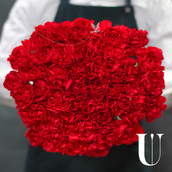 Монобукет из 19 красных кустовых роз сорта Мирабель 60 см в упаковке