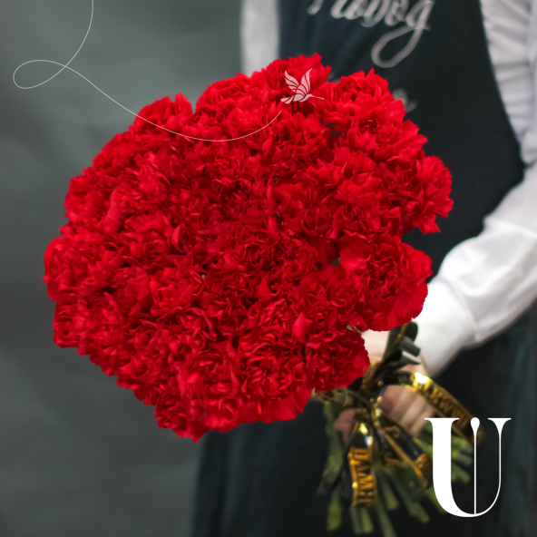 Монобукет из 51 красной и белой розы в дизайнерской упаковке
