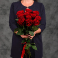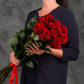 Монобукет из 19 роз сорта Миритим с атласной лентой