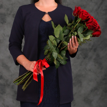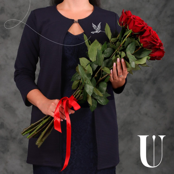 Монобукет из 7 роз сорта Мондиаль 70 см в матовой пленке