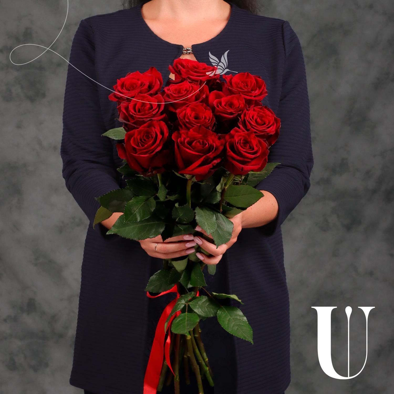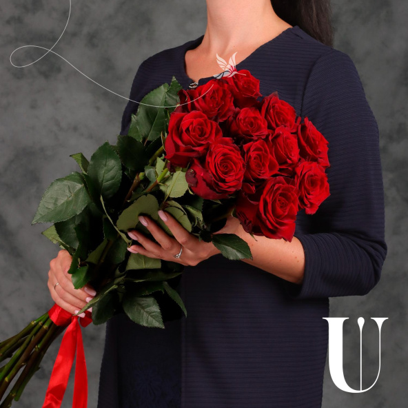Монобукет из 15 вывернутых роз сорта Нина в матовой упаковке