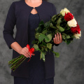 Монобукет из 25 роз сорта Ред Наоми с топпером