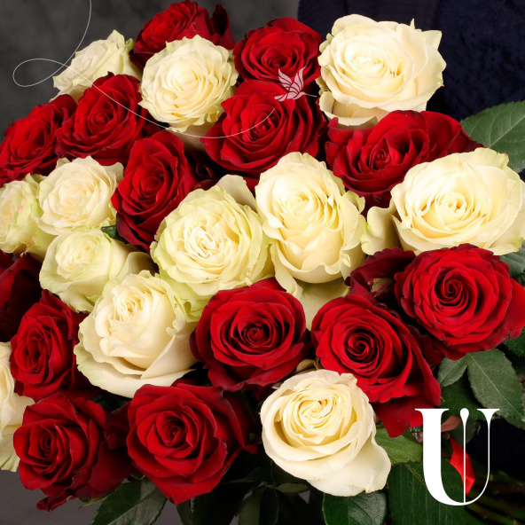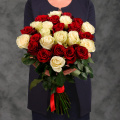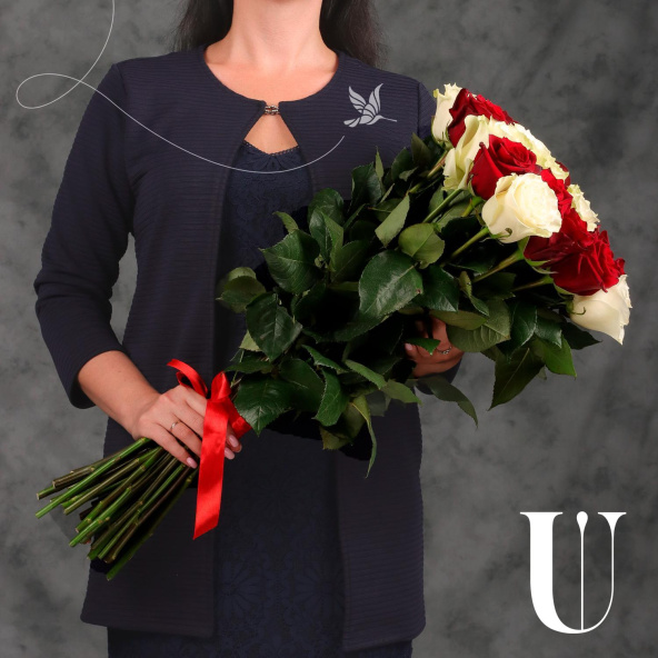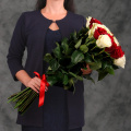 Монобукет из 51 красной розы в дизайнерской упаковке