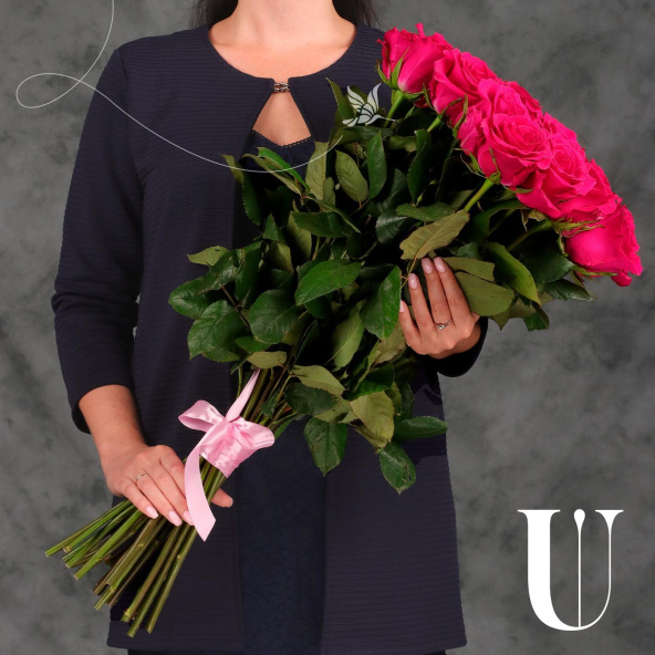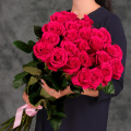 Монобукет из 25 роз сорта Пинк Флойд в упаковке