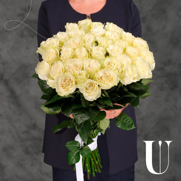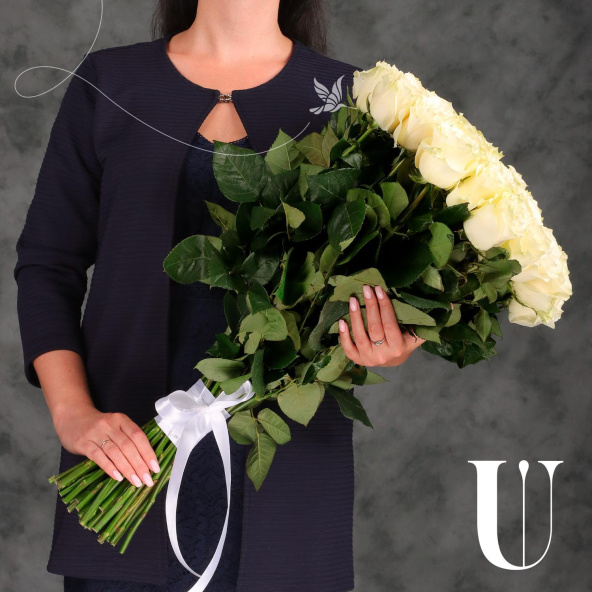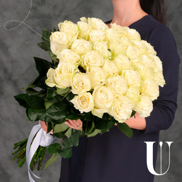 Букет из 31 Эквадорской белой розы, 70 см. Сорт Мондиаль