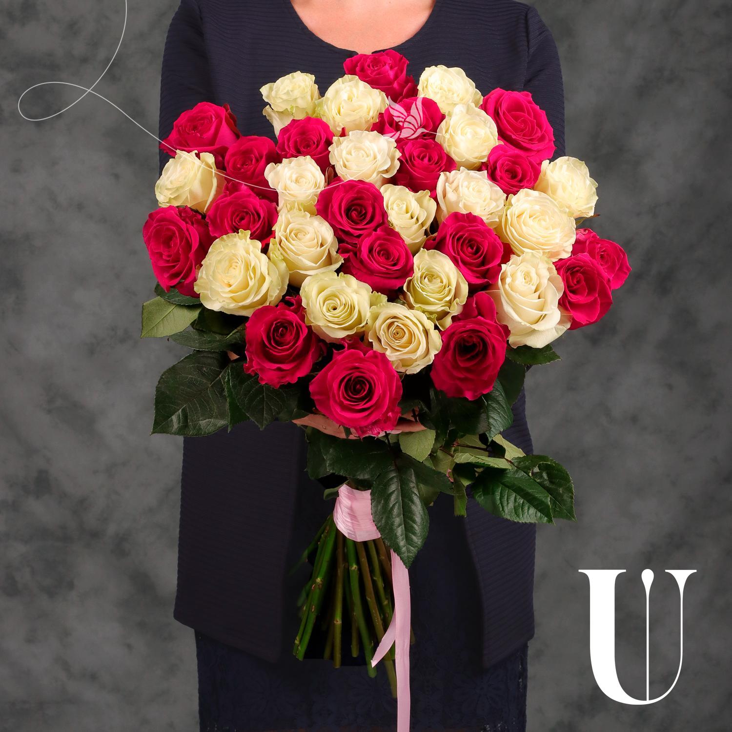 Букет из 35 белых и розовых Эквадорских роз, 70 см