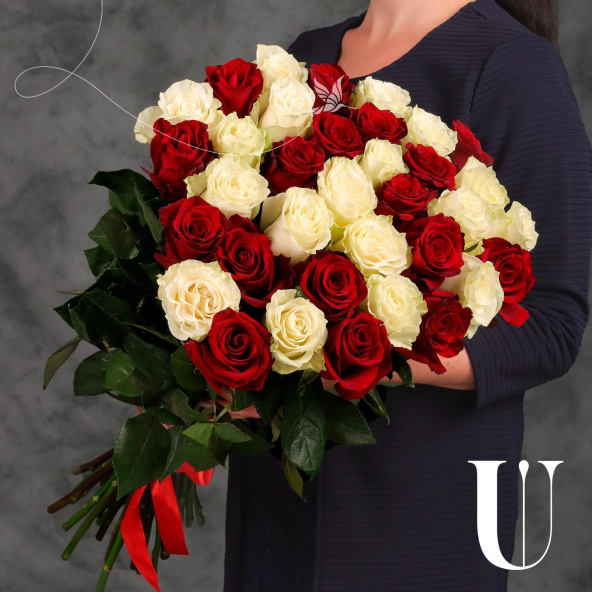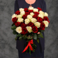 Букет из 35 Эквадорских красных и белых роз, 70 см