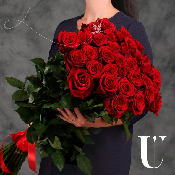 Роскошный монобукет из 35 белых эквадорских роз 70 см